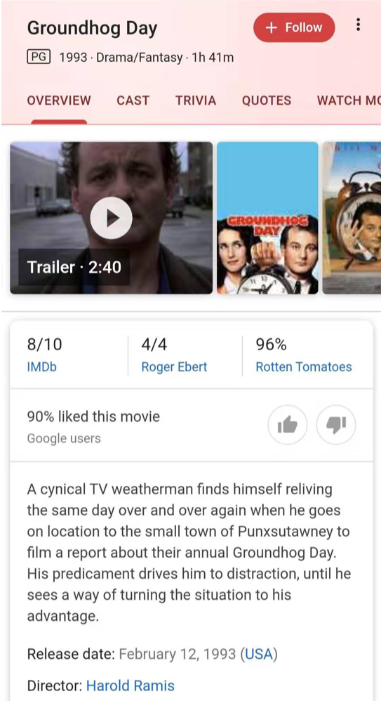 Groundhog Day was fairly successful on release and received generally positive reviews. Over time it gained popularity and critical acclaim and now has a cult status among comedy films. One of the more interesting facets of the story around this film is how the term "groundhog day" is now commonly used in the English language to describe a recurring situation. For entering the popular vernacular this way, in 2006, the film was added to the United States National Film Registry as being deemed "culturally, historically, or aesthetically significant".